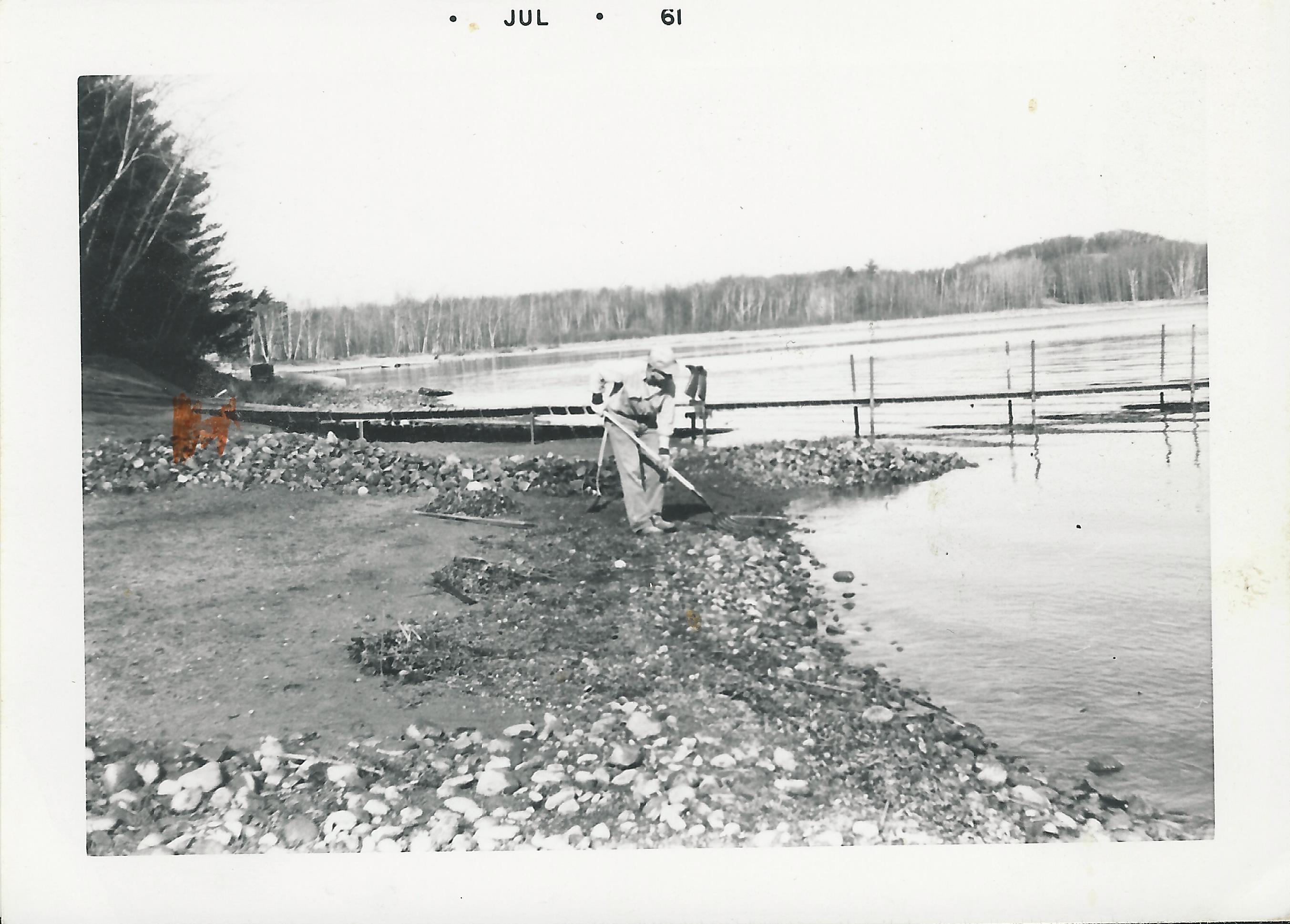 Grandpa working on the jetty to hold the sand beach